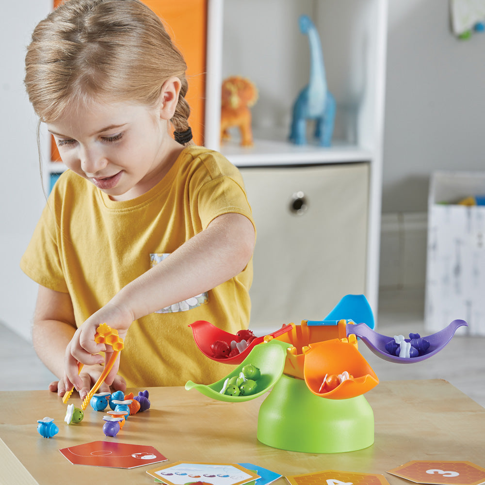 - Watch skills bloom: this fine motor-strengthening set is buzzing with benefits that aid in the development of essential preschool skills, including color-matching, counting, and sorting and patterning