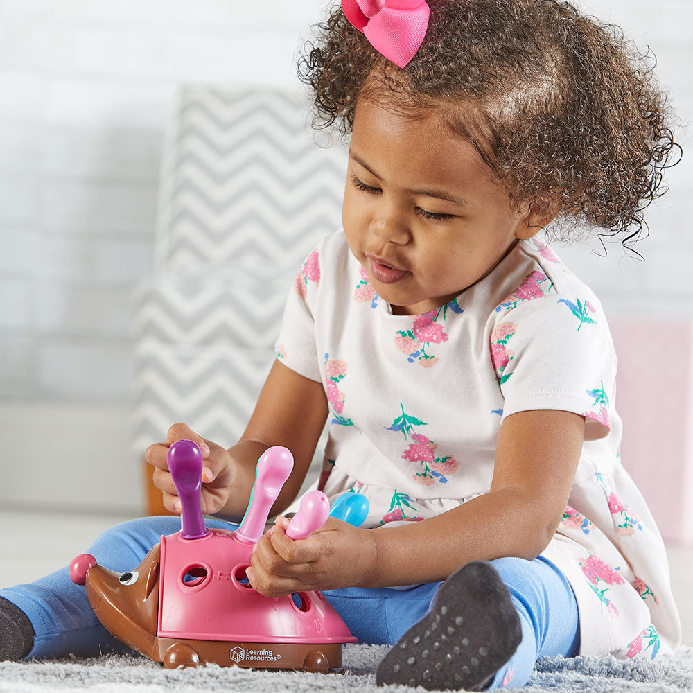 As children place the chunky, peg-shaped "quills" into the holes on Spike's back, they're actively strengthening hand muscles and developing essential fine motor coordination. The perfectly sized quills are ideal for small hands to grasp, promoting the proper grip that will later help with writing skills. The vibrant, multi-colored quills become natural tools for teaching color recognition, sorting, and counting concepts.